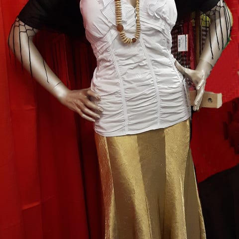 Silke med simili perler, str. 44, DAY, Nederdel , Silke, God men brugt, Mål: Vanvittig smuk silkenederdel med perler og simili. Der er lidt tyngde i den så den ikke blæser op.