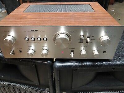 Har denne her rimelige fine forstærker til salg det er en jeg har fået igennem en handel. Jeg har gået den igennem for fejl og renset div kontakter og print og ellers ikke lavet noget på den. Den er i rimelig god stand men har en skade i øverste venstre hjørne og så har kassen være gået i 2 dele men det er limet se billeder men lyden er faktisk på den
