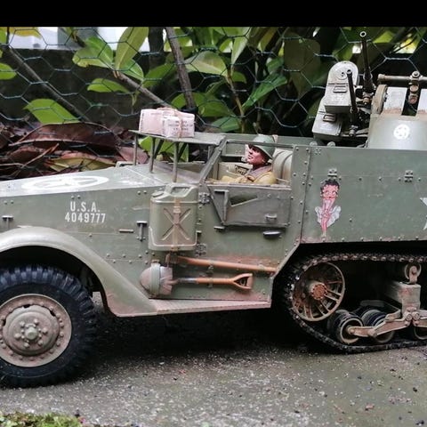 Sherman fjernstyret tank i 1/16 med Calliope kit monteret.