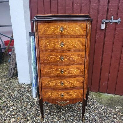 Kommoden har stået på pigernes værelse og været anvendt til kan anvendes til deres dukker og Lego m.m. kan også bruges som opbevaring af tøj. Kun fantasien sætter grænsen.