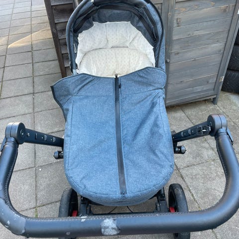 En god og skøn klapvogn. Brugt til to børn som har elsket den. Er helt nyvasket betræk og stel i sommervejret. Indeholder solsejl, overtræksslag foran, og sovepose.