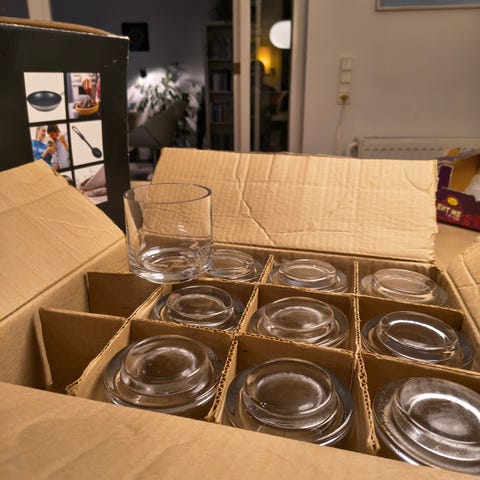 Bordpynt, Fyrfadsglas - har 24 stykker. Højden er 6 cm og Ø er 7,5 cm. Prisen er 3,5 pr stk.