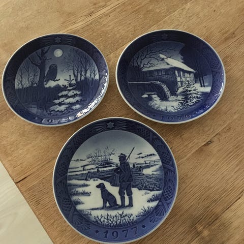 Lille porcelænsskål / platte til ophæng med moriv fra Peter Lieps Hus i Dyrehaven. Fra Royal Copenhagen, nummer 4444. Dia 11,4 cm.