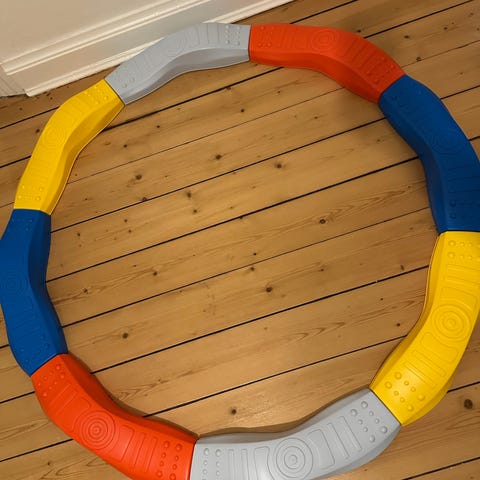 Balance/vippebræt, der er sjovt at vippe og snurre rundt på. Brugt ude derfor slidt på undersiden.