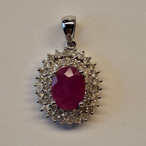 Udført i 14 karat guld med facetslebne rubiner og klare sten.