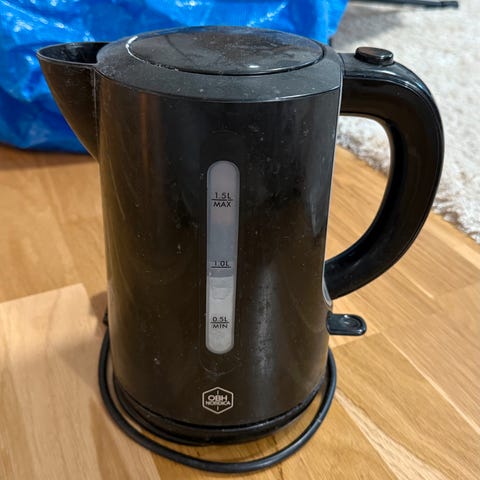 Sort elkedel i god stand, virker som den skal.