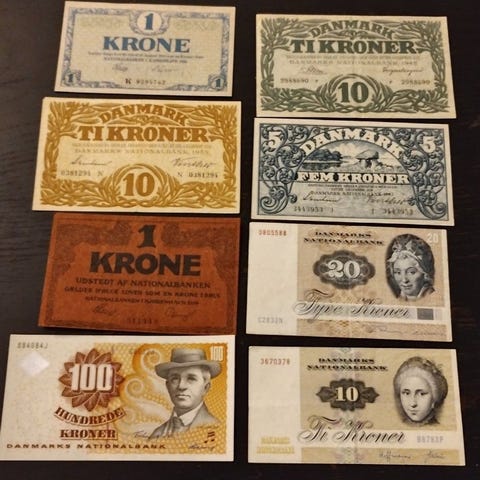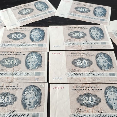 En gammel dansk sedler collection 20 kr.