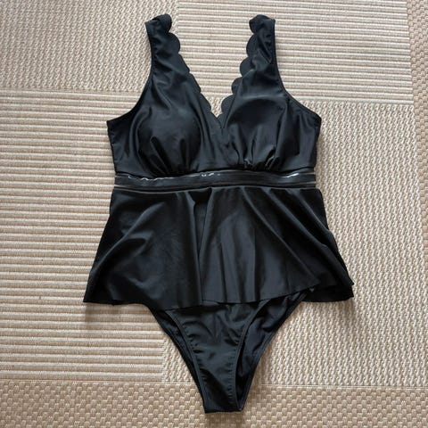 Sort badedragt med skørt.