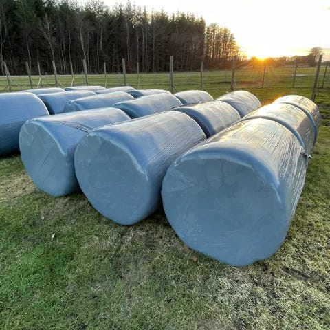 Det ligger mellem 8-15 procent vand, så perfekt wrap hø der er næsten tør.