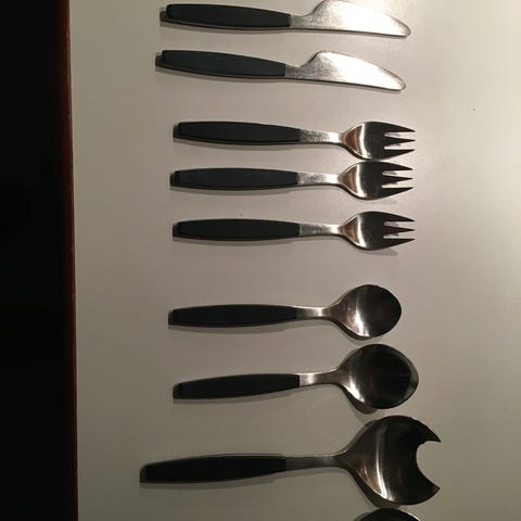 Georg Jensen Strata. Smukt tidløst bestik designet af Henning Koppel. Flot derveringdgsffel med sort skaft. Længde 19 cm.