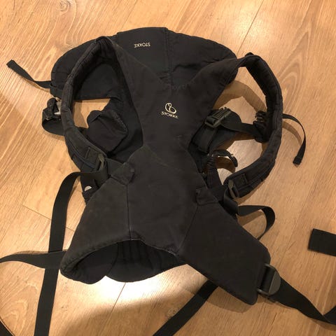 Sort Stokke MyCarrier bæresele, klar til et nyt hjem! Denne alsidige og ergonomiske bæresele giver dig og din baby tæt kontakt og optimal komfort.