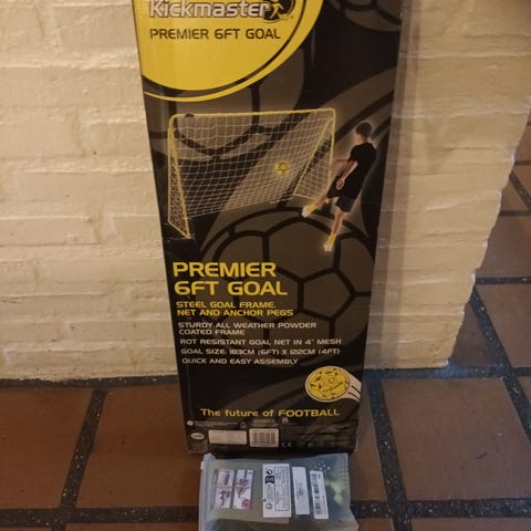 Kickmaster "transportable" fodboldmål. Fylder ingenting når det ikke er i brug og nemt og samle igen. Få brugsspor, men nettet er som nyt 😃