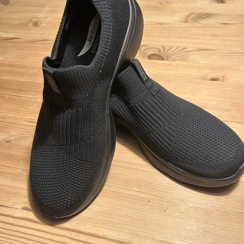 Denne skønne slip-in sko fra Skechers, kombinerer komfort og feminint design i en elegant og praktisk hverdagssko. Den strikkede overdel former sig blødt omkring foden og giver god åndbarhed, mens den fleksible sål og støddæmpende indersål sikrer optimal komfort hele dagen. Med sit diskrete mønster og elastiske rem over vristen er modellen både nem at tage på og behagelig at gå i – perfekt til både hverdag og fritid.