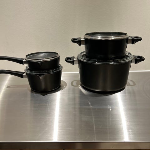 Serien passer til alle typer kogeplader, tåler ovn op til 250 grader og er lavet af genanvendt aluminium. What’s not to like!