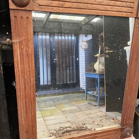 Flot og gedigent antik spejl i træramme.