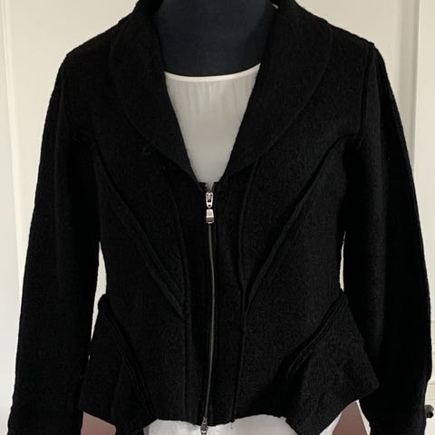 Mongul jakke str. 38, multifarvet og næsten som NY. 97% bomuld og 3% elastan kombineret med at der er gjort meget ud af pasformen, gør den utrolig lækker at have på. Meget klædelig. Den er med foer og fake lommer foran. Bryst 49cm, talje 45cm og for neden 53cm. Længde 58cm. Ærme 59 fra skuldersøm til kant /43cm fra armhule til kant. Vejer 435g.