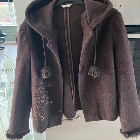 Brandtex hørjakke str. 40. Fantastisk smuk sommerjakke i 100% hør og all-over broderede blomster. Foer i ærmer og skulderparti. Figursyet og med et lille skød som gør den meget klædelig. Bryst 50cm, talje 46,5cm, hofter ca. 57cm. Længde på ryggen 61,5cm + krave. Næsten som ny / god men brugt - den skal stryges lidt bedre. Vejer 515g.