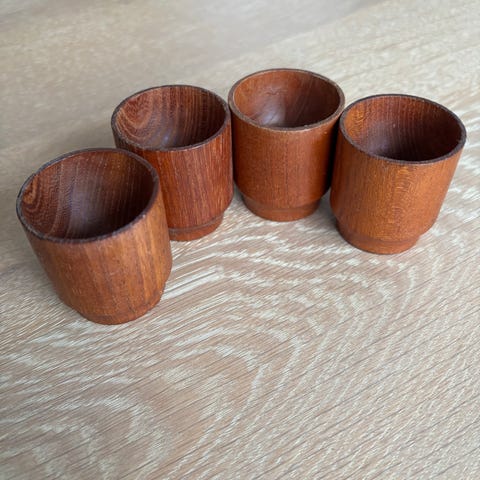 Fine æggebærger i rustfrit med bund i teak eller mahogni