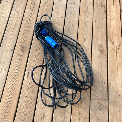 30 m CEE gummi kabel med han og vinkelstik godkendt til campingplads.
