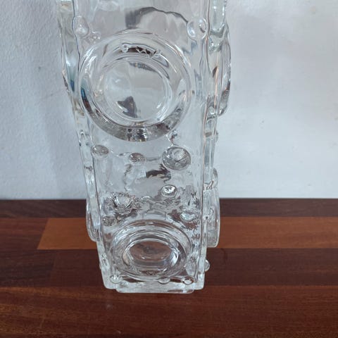 Vase, 4-kantet/cirkel-mønstre, klart krystalglas, Smålandshyttan/<1976