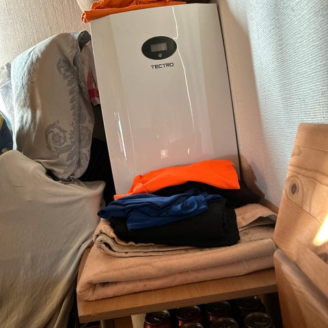 Der medfølger noget stof og klæbe bånd til luft forsegling som er købt separat. Sendes ikke da den altså vejer 19 kg.
