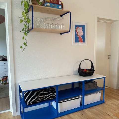 Ny pris … Lågerne kan tages af , eller skiftes til anden farve. Rigtig flot reolsystem i rød højglans sælges. Det kan bruges til både tøjskab og glas og kopper. Alt er i rigtig pæn stand . Med indbygget lys , du vælger selv farven , via betjeningspanelet . Afhentes på adressen . Røgfrit hjem.