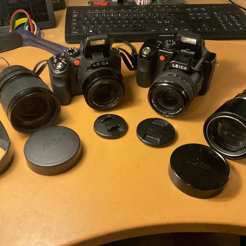 Mit gamle Leica, som jeg ikke kan bruge længere, idet optræk ikke virker. Ellers fin stand med gammel lædertaske. Desuden medfølger forskelligt Leica tilbehør