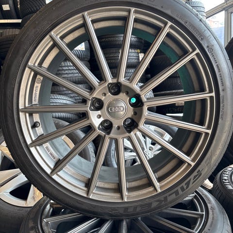 Sæt med 4 stk. ægte Audi alufælge i størrelse 20” med Goodyear Eagle F1 265/35 dæk. Brugt, men rigtig velholdt – kun lette brugsspor. Passer bl.a. til Audi A5 (2017–2023+), A6 (2018–2023+), A7 (2018–2023+), RS5, S6, RS6, S7, A8 og Q5 (2017–2023+). OEM 5x112 og ET29 – klar til montering. Dækkene er i god stand med fint mønster. Giver bilen et sporty og eksklusivt look. Klar til ny ejer!