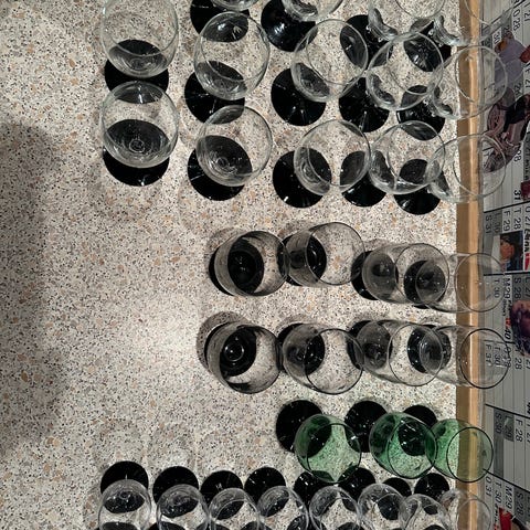 Hans Christian Wagner for Bjorkshult smoky tumbler glasses. 9 ølglas (lille skår i et ølglas). 8 snapsglas. 7 portvin glas. 3 vinglas. 27 stk i alt. Hentes hos køber.