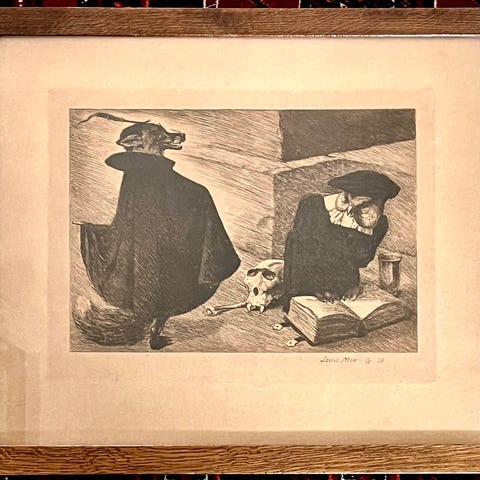 Radering, Louis Moe, motiv: Troldeunge og Bjørn