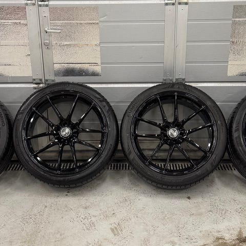 GMP 9,5x21” 5x120 ET40 center 72,6 concave fælge. Vredestein dæk med 6-7mm mønster.