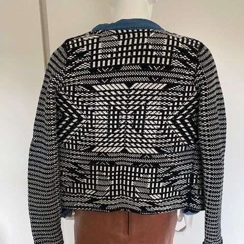 Meleret sort/grå lang blazer jakke fra HM str M.