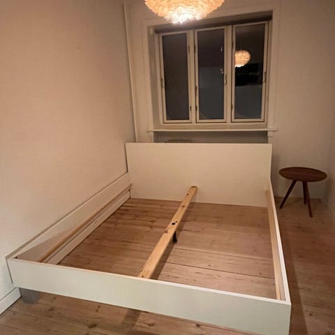 Passer til 2x90 madrasser eller springmadras. Lamelbund medfølger.