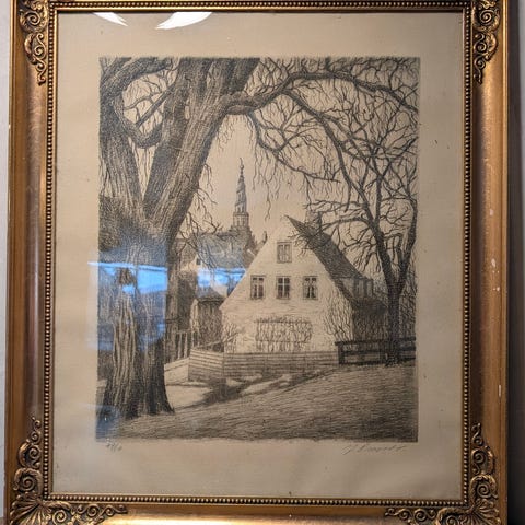 Original radering, Jørgen Roed, motiv: Roskilde Domkirke