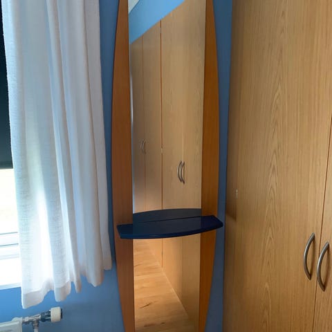 Spejl, Spejl blå med sjæl og patina, 65x35 - er på Bornholm /