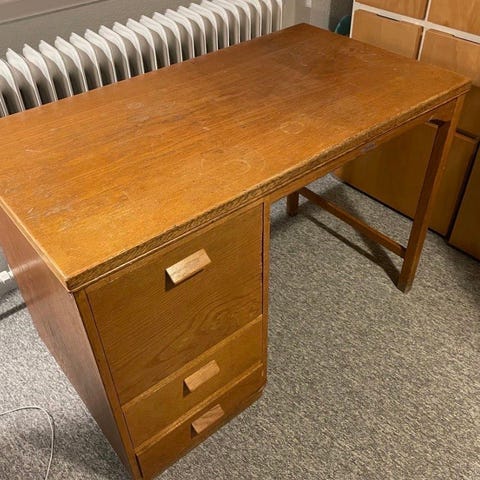 Skrivebordet er angiveligt fra 60/70'erne. Måler: