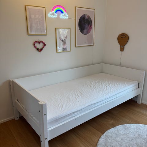 Ilva Flexa Dot seng i gammelrosa. Det er en fin seng, fog med nogle brugsspor der kan skjules ved at vende dem ind mod væggen. Sælges UDEN madras