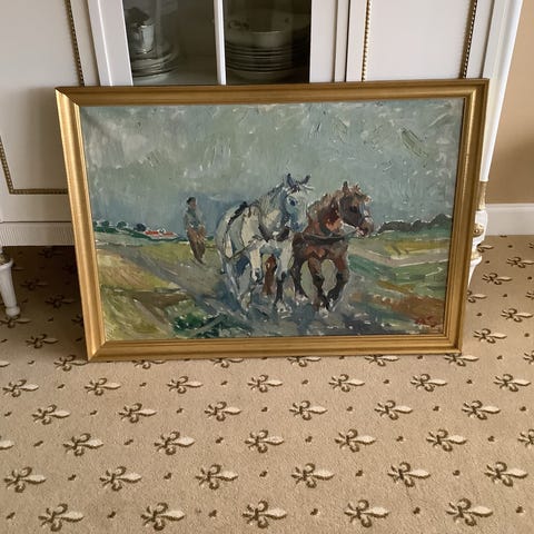 Oliemaleri på lærred. Måler uden ramme 62x38cm.