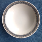 Porcelæn, Tallerken - middags- og dyb, Rörstrand Expo, Tallerkener i serien Expo fra Rörstrand med fin blå/grå dekoration. Er nok fra 60'erne. I rigtig pæn stand med alm. brugsspor (ridser). Tre middagstallerkener har et meget lille skrab/plet - to på kanten og en på fladen (billede 6-7). Èn dyb tallerken har to meget utydelige pletter på kanten (billede 8)