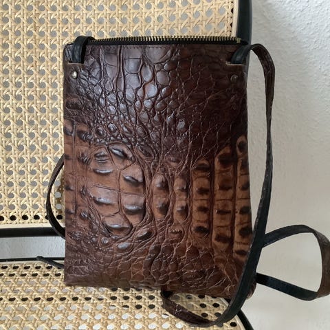 Indeni foret med vaskeskinds-lignende stof. tasken rummer et stort rum samt lynlåslomme.