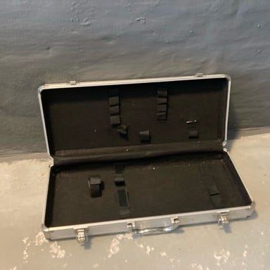 Instrumentkasse med skum foring. Udvendige mål: 89 x 29 x 21 cm. Med hjul og fødder er højden 95 cm. Indvendige mål: 86 x 26 x 18 cm. Afhentes i 2610 Rødovre.