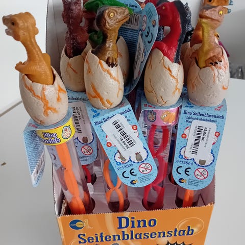 Kom badesæbe i dino’en og tryk på knappen, dinoen begynder at lave et herligt skumvandfald.