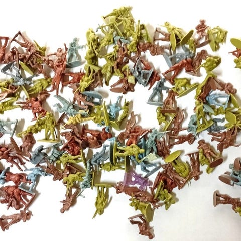 155stk håndmalede minisoldater i plast. H.ca 2,5cm