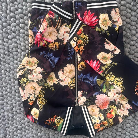 Let bomber jakke str S/M med fugle og blomster