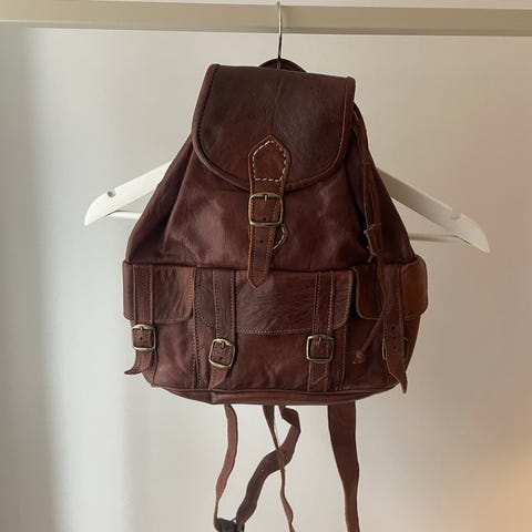 Rygsæk i kernelæder med patina. Se mærker på fotos