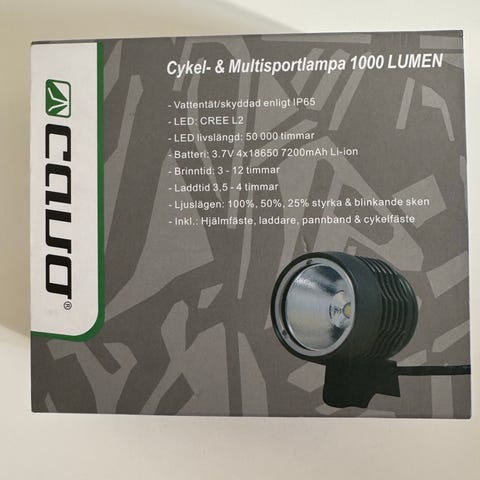 Kan monteres på cykel, cykelhjelm og pandebånd.