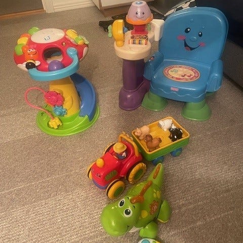 Musikinstrumenter, Musikstol, Fisher price., Når barnet sætter sig, begynder musik at spille. Der er tænd/sluk knap. Brugt men god