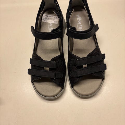 New Feet sandaler i blå farve, størrelse 41. Sandalerne har en komfortabel pasform og er velegnede til daglig brug. De er designet med justerbare stropper for optimal tilpasning og komfort.