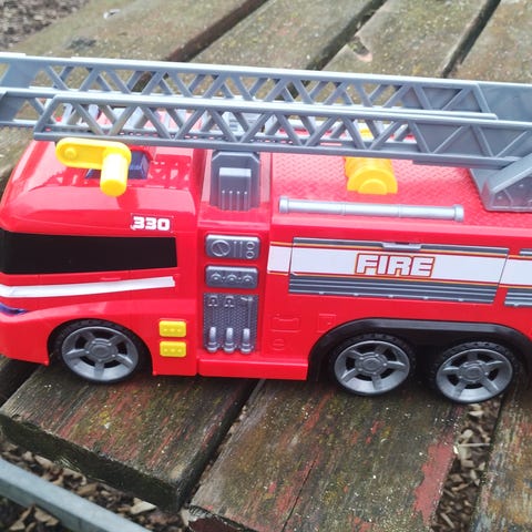 CarMania Brandbil med lyd og lys og udtrækkelig stige. Købt hos fætter BR sidste jul. Fungerer som den skal. Batterier er inkluderet.