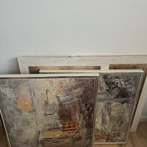 De måler totalt 39,5×39,5 cm heraf en pæn bred børstet sølvramme på 4 cm.